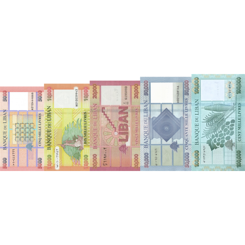 (441) ** PNew (PN91-PN95) Lebanon - 5000-100.000 Livres (2019-2022) (5 Notes)