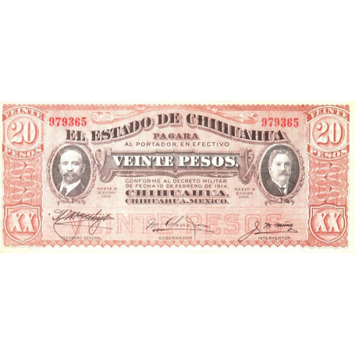(359) Mexico PS537 - 20 Pesos Year 1915 (Revolutionary)