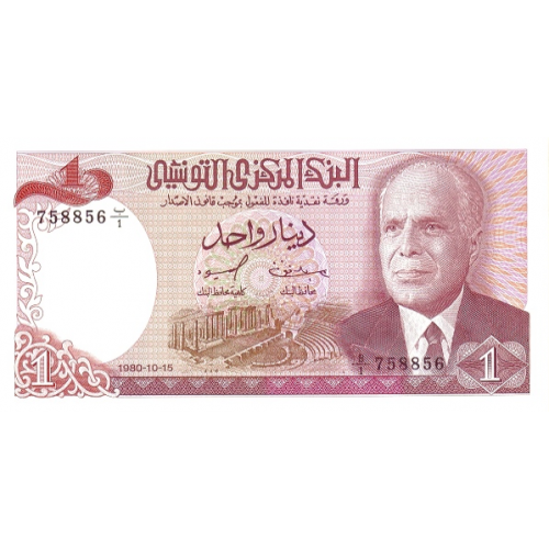 P 74 Tunisia - 1 Dinar Year 1980
