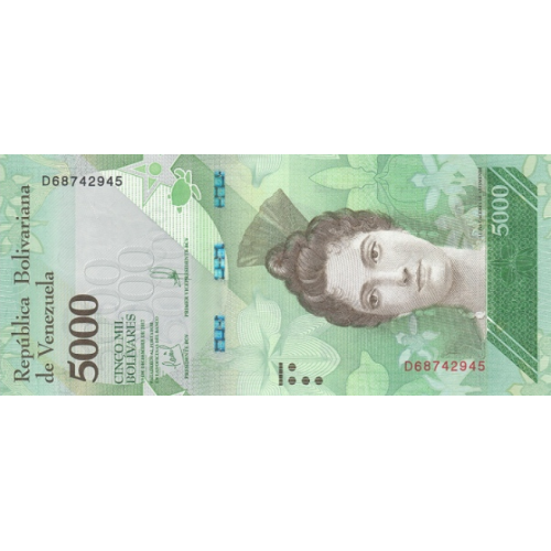 (450) Venezuela P97c - 5000 Bolivares Year 2017 (Small Security Thread)
