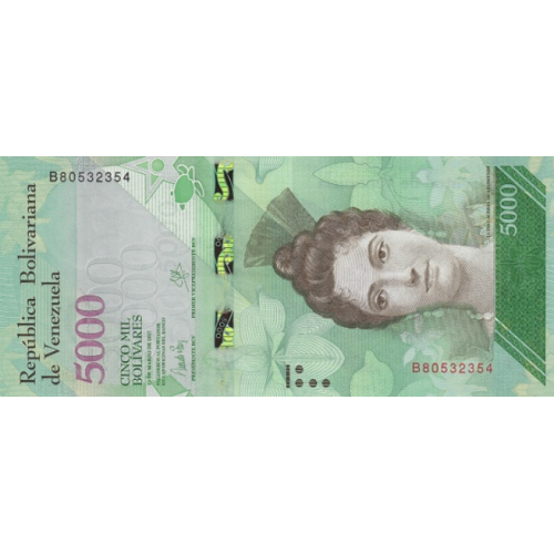 (449) Venezuela P97b - 5000 Bolivares Year 2017 (Wide Security Thread)