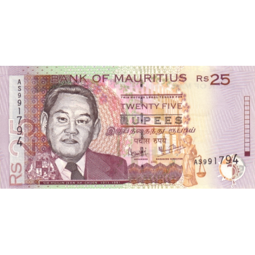 P49b Mauritius - 25 Rupees Year 2003