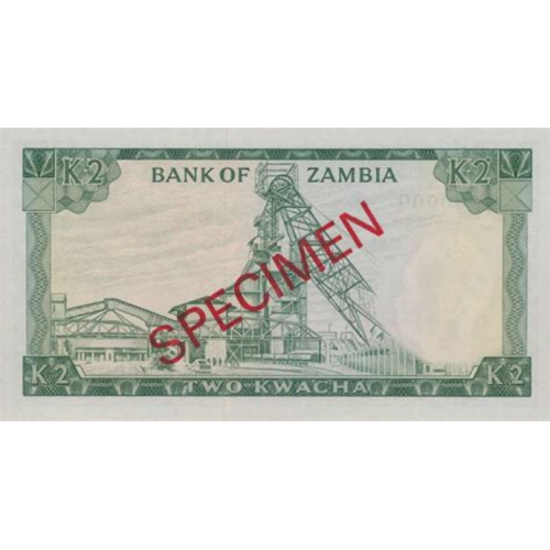 P11S Zambia - 2 Kwacha Year ND (1969) (Specimen)