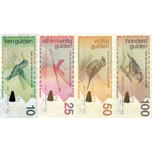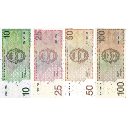 P28h,29i,30h & 31h Netherlands Antilles - 10,25,50 & 100 Gulden Year 2016 (4 Notes)