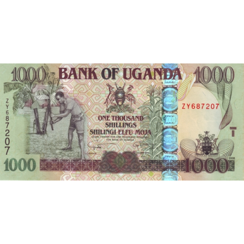 P43c Uganda - 1000 Shillings Year 2008
