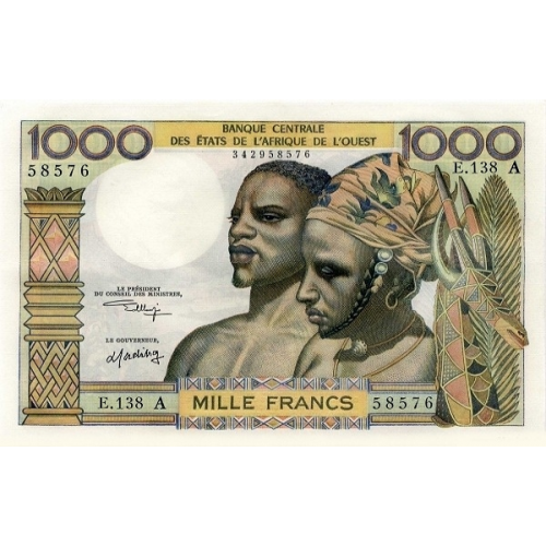 P103Aj Ivory Coast - 1000 Francs Year ND