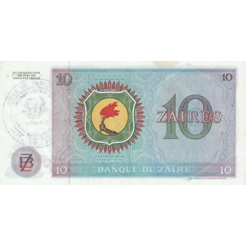 P R4b Zaire - 10 Zaires Year 1977 (Stamp is less Beautiful)
