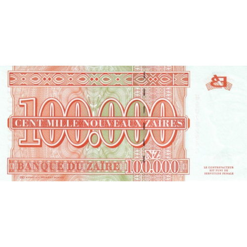 P76 Zaire - 100.000 N. Zaires Year 1996