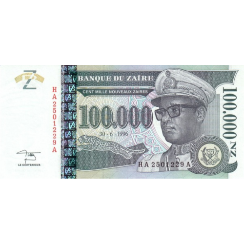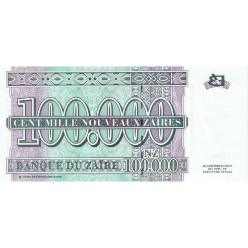 P77A Zaire - 100.000 N. Zaires Year 1996