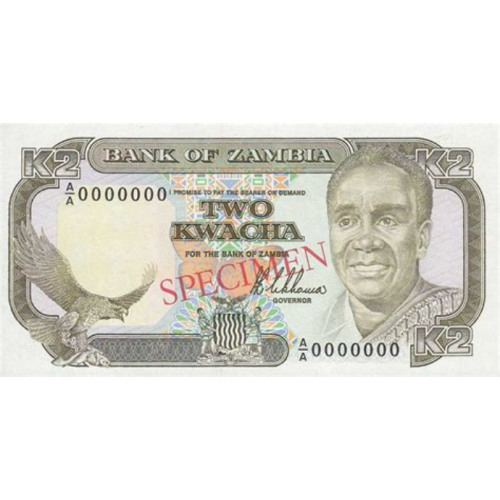 P29S Zambia - 2 Kwacha Year ND (1989) (Specimen)