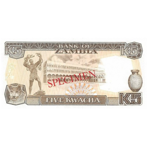P30S Zambia - 5 Kwacha Year ND (1989) (Specimen)