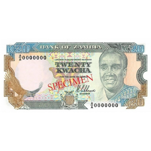 P32S Zambia - 20 Kwacha Year ND (1989-1991) (Specimen)