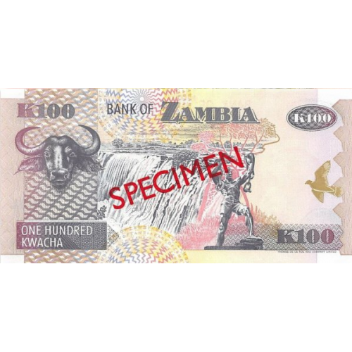 P38S Zambia - 100 Kwacha Year 1992 (Specimen)