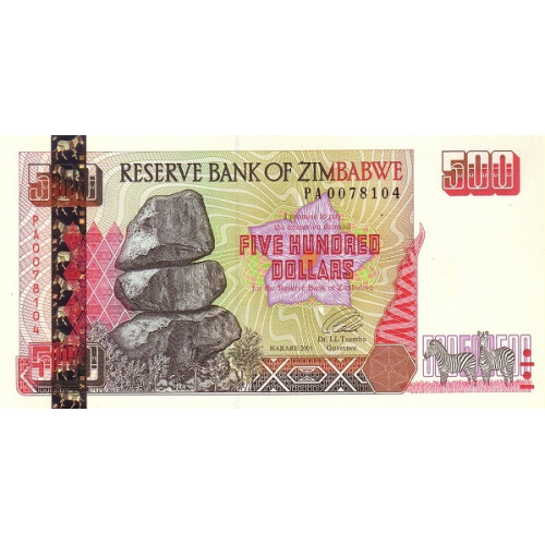 P10 Zimbabwe - 500 Dollars Year 2001