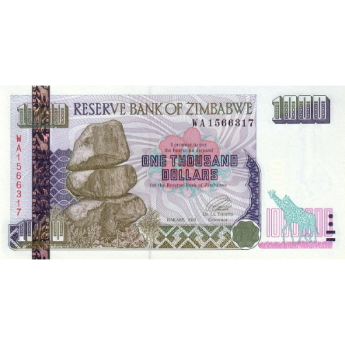 P12a Zimbabwe - 1000 Dollars Year 2003