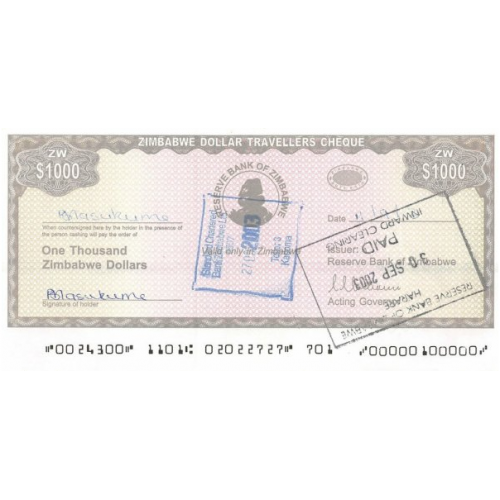 P15 Zimbabwe - 1000 Dollars Year ND (2003) (With Stamps)