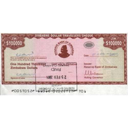 P20 Zimbabwe - 100.000 Dollars Year ND (2003) (With Stamps)