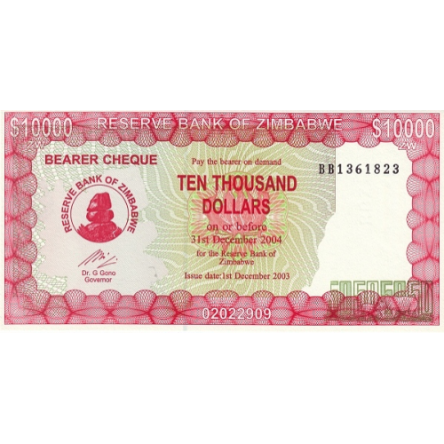 P22d Zimbabwe - 10.000 Dollars Year 2003/2004 (Bearer Cheque)