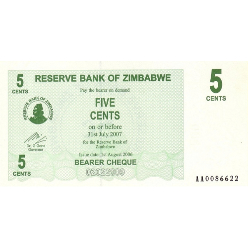 P34 Zimbabwe - 5 Cents Year 2006/2007 (Bearer Cheque)