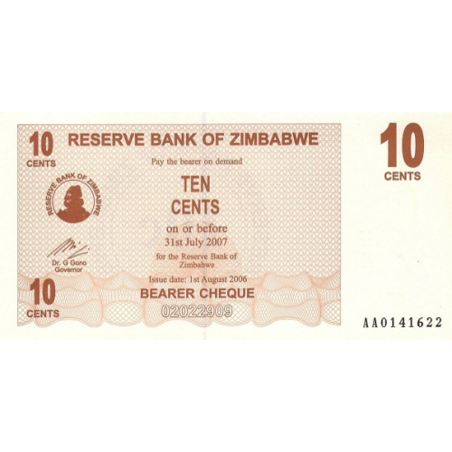 P35 Zimbabwe - 10 Cents Year 2006/2007 (Bearer Cheque)