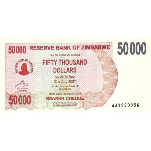 P47 Zimbabwe - 50.000 Dollars Year 2007/2007 (Bearer Cheque)