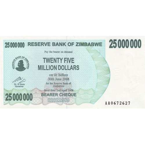 P56 Zimbabwe - 25.000.000 Dollars Year 2008/2008 (Bearer Cheque)