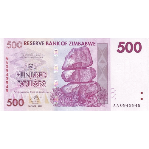 P70 Zimbabwe - 500 Dollars Year 2007