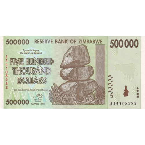 P76a Zimbabwe - 500.000 Dollars Year 2008