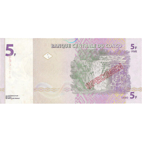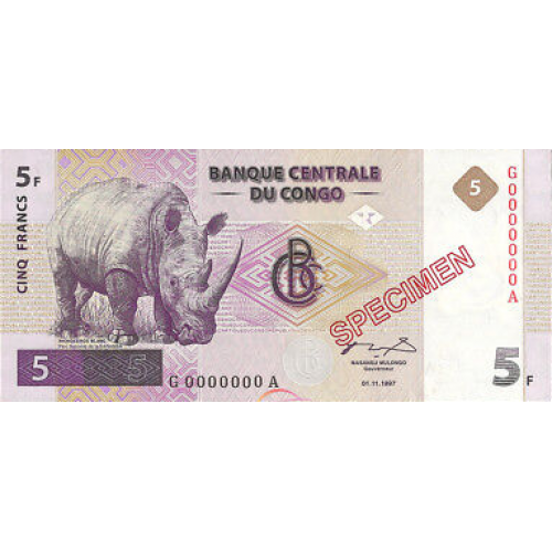 P86S Congo (Democratic Republic) -5 Franc Year 1997 (SPECIMEN)