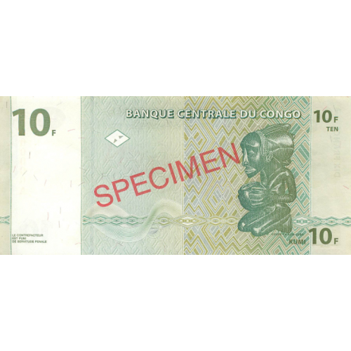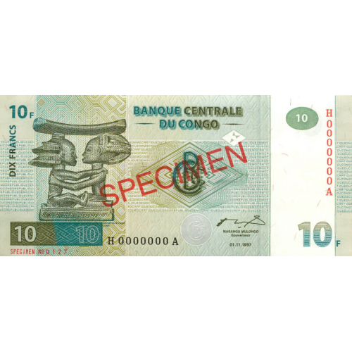 P87S Congo (Democratic Republic) -10 Franc Year 1997 (SPECIMEN)