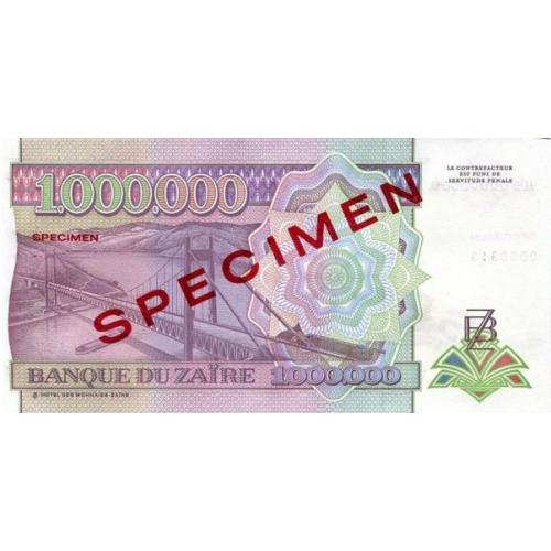 P45S Zaire - 1.000.000 Zaires Year 1993
