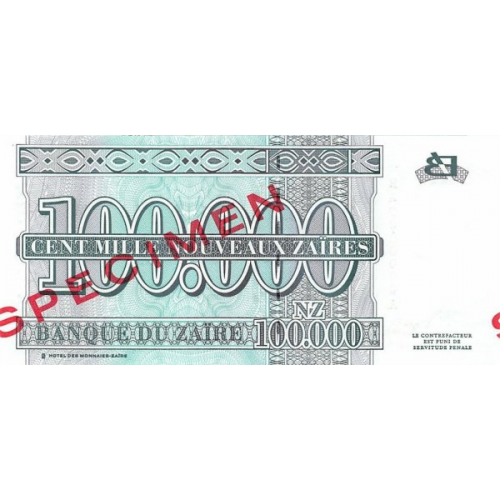 P77AS Zaire - 100.000 N. Zaires Year 1996