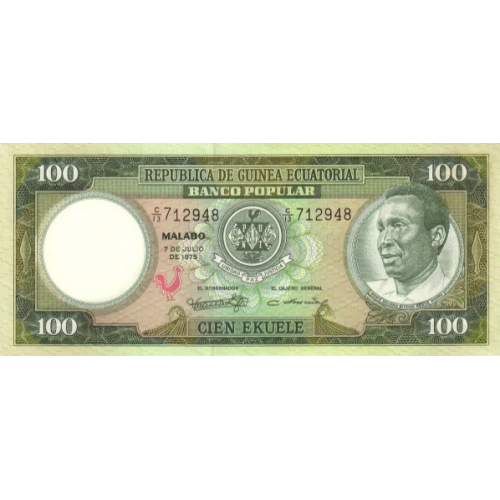 P11 Equatorial Guinea (Republic) - 100 Ekuele Year 1975 (OUT OF STOCK)