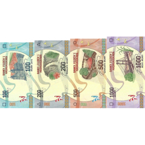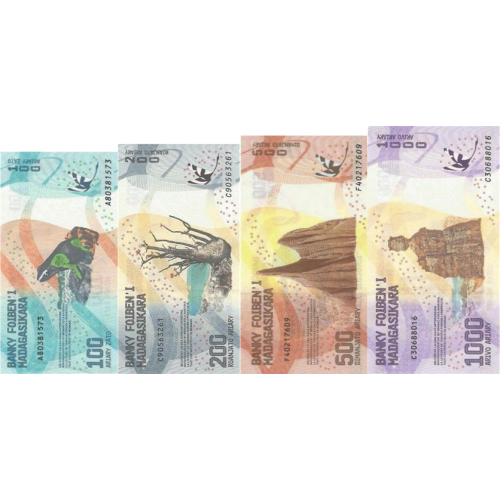 P97,P98,P99,P100 Madagascar - 100,200,500 & 1000 Ariary Year ND (2017) (4 Notes)