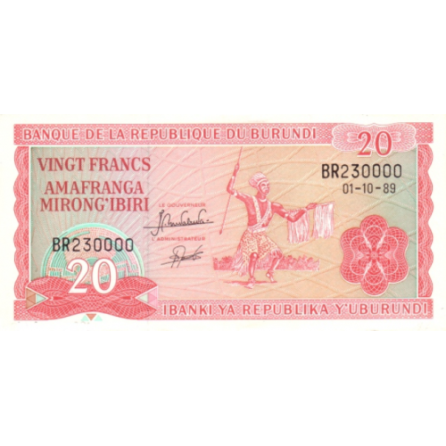 P27b Burundi - 20 Francs Year 1989