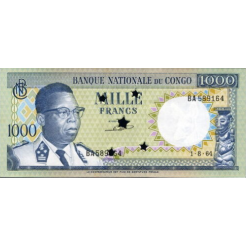 P 8 Congo (Republic 1961-1971) - 1000 Francs Year 1964 (With 5 Stars)