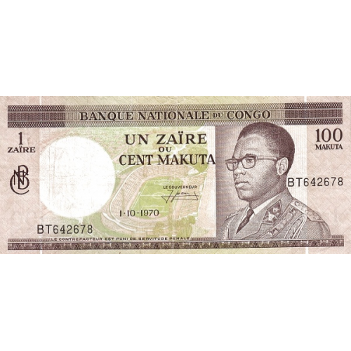 P 12b Congo (Republic 1961-1971) - 1 Zaire/100 Makuta Year 1970