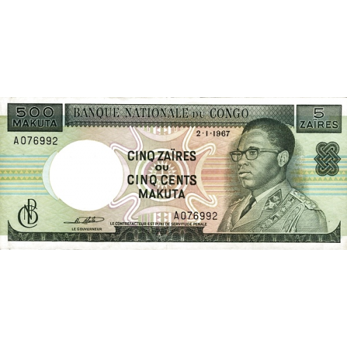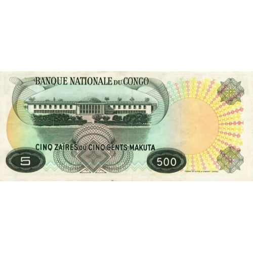 P 13a Congo (Republic 1961-1971) - 5 Zaire/500 Makuta Year 1970 (With Pinholes)