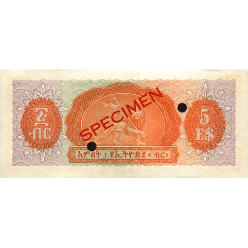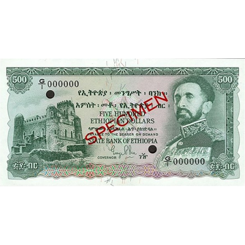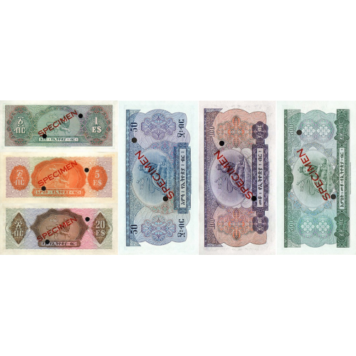 P18S,19S,P21S,22S,23S,24S Ethiopia - 1,5,20,50,100 & 500 Dollars Year ND (1961) (6 Notes) (SPECIMEN)