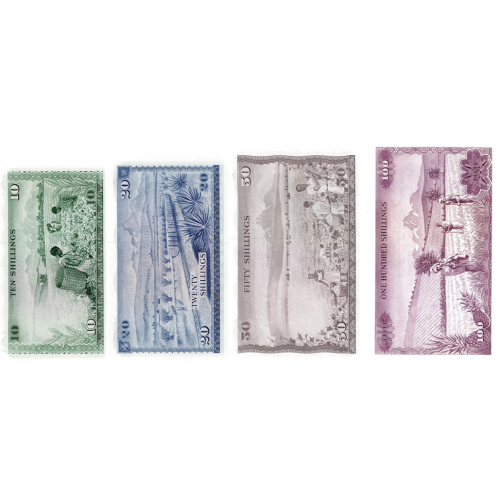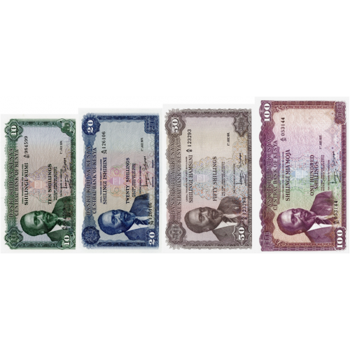 P 7e,8d,9b & 10c Kenya - 10,20,50 &100 Shillings Years 1971-1974 (4 Notes)