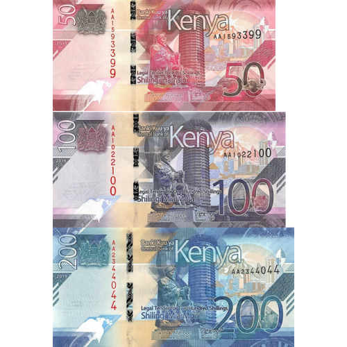 P52-P54 Kenya - 50-200 Shillings Year 2019 (3 Notes)