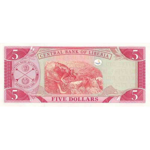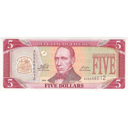 P26e Liberia - 5 Dollars Year 2009
