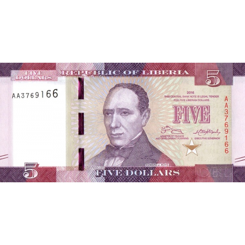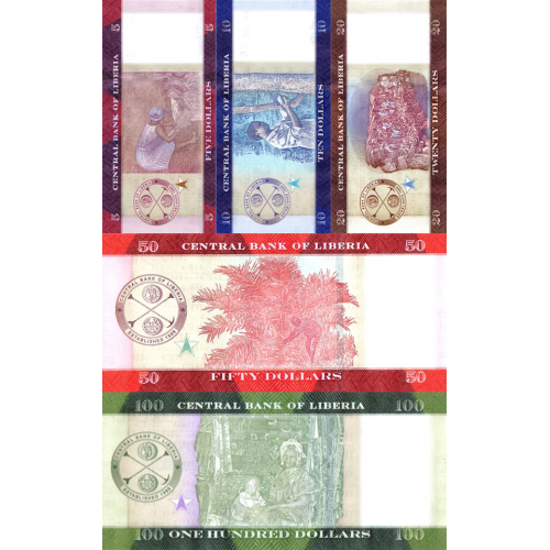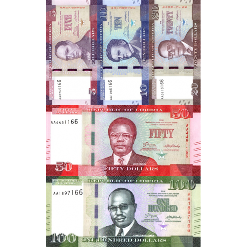 P31a,32a,33a,34a & 35a Liberia - 5,10,20,50 & 100 Dollars Year 2016 (5 Notes)