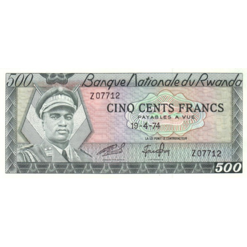 P11a Rwanda 500 Francs Year 1974