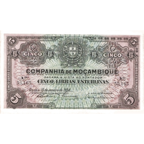 P R32 Mozambique - 5 Libras Year 1934 (Condition XF)