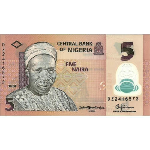 P38e Nigeria - 5 Naira Year 2014 (Polymer)
