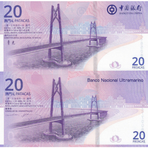 (737) ** PN127 & 89 Macau 20 Patacas Year 2019 (2 Notes from Bank of China & Banco Ultramarino)