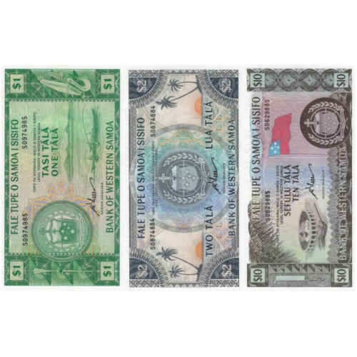 (704) ** PN16s,17s,18s Western Samoa 1,2 & 10 Tala Year N.D. (With Letter S For Serial Number)