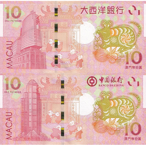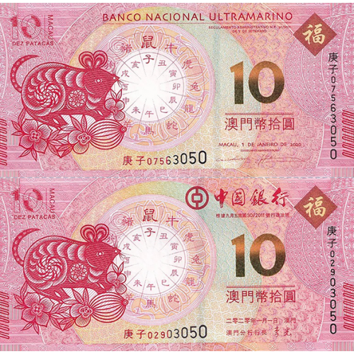 (643) ** PN88E Macao - 10 Patacas Year 2021 (2 Notes - Year of the Rat - Bank Of China & Banco Ultramarino)