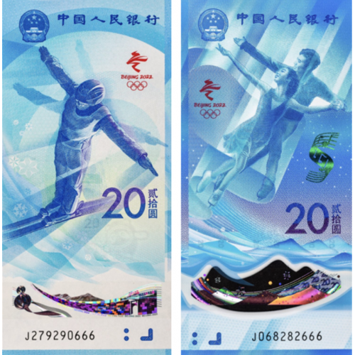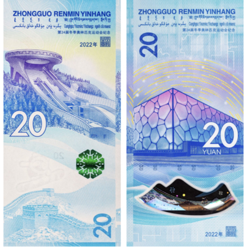 (560) ** PN917 & 918b China 2 x 20 Yuan (Olympic Winter Games) Year 2022 (Comm)